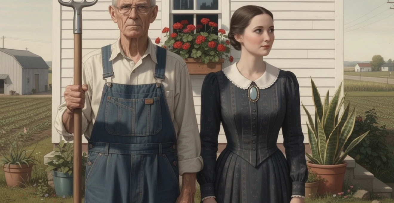 Un autre débat, plus intime, traverse l’interprétation du tableau : qui sont exactement ces deux personnages ? Wood lui-même a parlé d’un fermier et de sa fille célibataire, ce qui correspond à l’écart d’âge visible entre les modèles. Pourtant, une partie du public a spontanément vu en eux un couple marié. Cette hésitation n’est pas anodine : elle influe directement sur la symbolique de l’œuvre. Sommes-nous face à une relation d’autorité parentale, où le père, figure du patriarcat, protège jalousement la vertu de sa fille ? Ou bien face à un mariage sans joie, figé dans une routine sans tendresse ?
